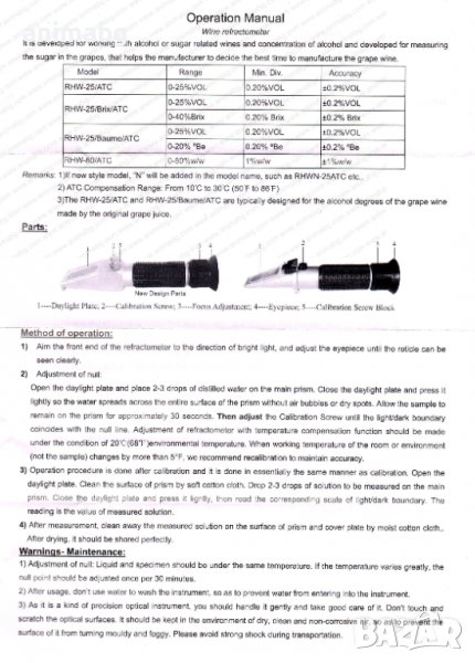 •Measuring Range: 0-25%Vol , 0-40%Brix