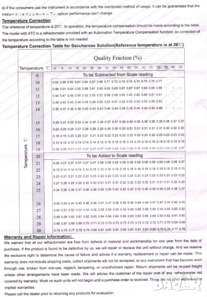 •The need to consult temperature correction charts is eliminated with the built-in 10-30°C ATC. The unit also comes with a manual calibration knob that is secured with a lock nut and has a brighter display than the more narrow range refractometers.