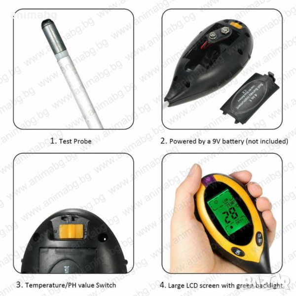 ANIMABG Цифров Влаго светло PH метър със сонди 4 in 1