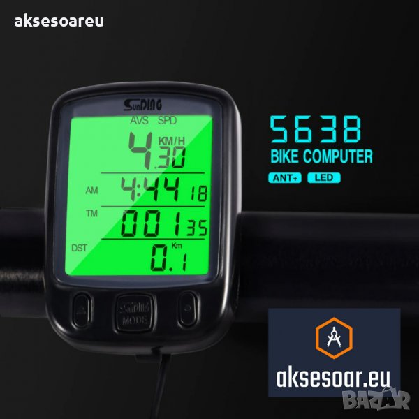 одометър с LCD дисплей Скоростомер за колоездене със зелена подсветка термометър датчик измервател на