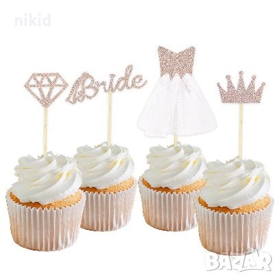 Bride to be 4 бр диамант рокля корона картонени топери за мъфини и торта Моминско парти декор топер → Обява 37086283