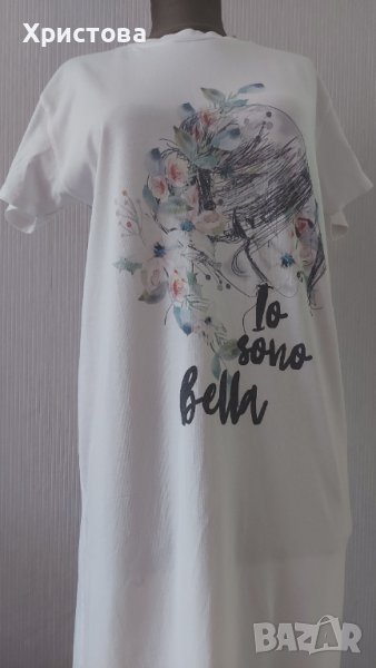 Рокля в бяло за лятото от вискозно трико, модел тип тениска с миди дължина. Размер универсален - за дами от С до Л. Дължина около коляно. Символични цени на всички дрешки в профила ми. Опция тест и преглед. Доставка с отстъпка до офис ЕКОНТ. 0899243418