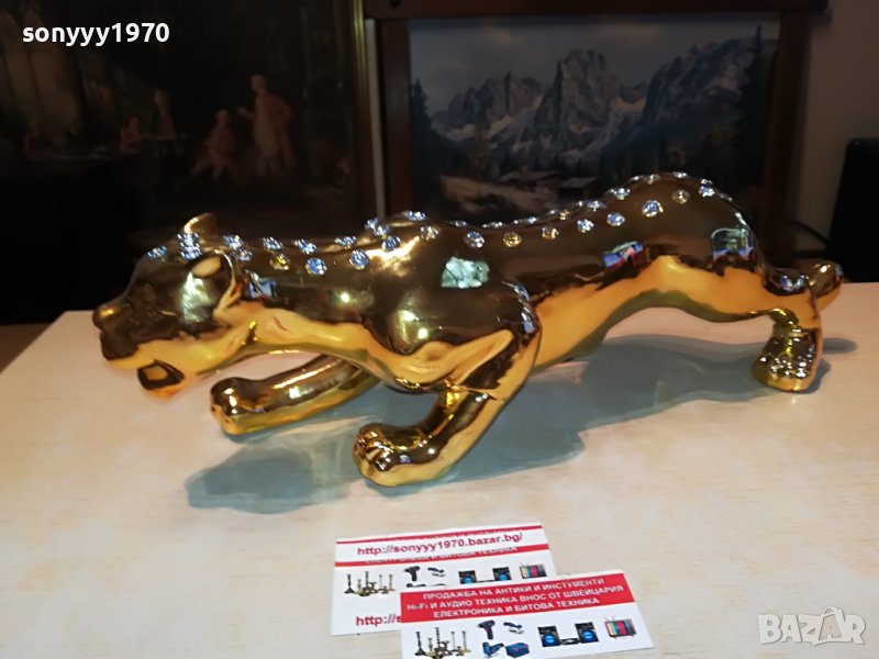 GOLDEN TIGER-КРАСИВА И СТИЛНА ФИГУРА В ЦВЯТ ЗЛАТО-ЗА КОЛЕКЦИЯ ДЕКОР ПОДАРЪК-КЕРАМИКА И БЯЛИ КАМЪНИ ПО ГЪРБА-42Х13Х12СМ-от днес 28.02.22г пращаме със спиди или еконт с преглед и тест след превод на капаро за куриерската услуга поради зачестили некоректни потребители-поръчки само в тук в саита! по телефона и със смс не! краини цени! бартери не правиме! всеки ден нови неща-още 2-3 наши обяви тук