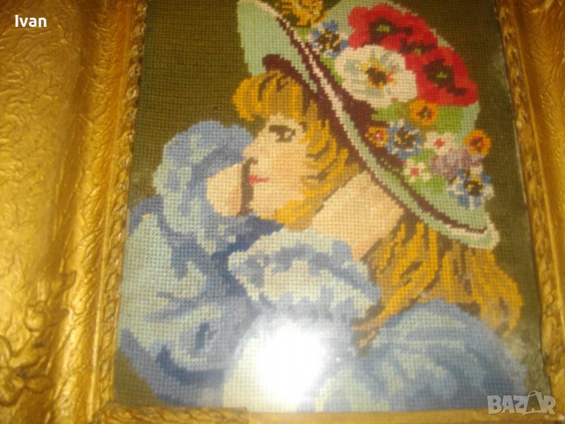Стар/старинен/антикварен/колекционерски ръчно нашиван голям гоблен с ДМЦ конци. Предполагам германско производство.