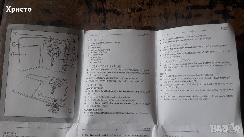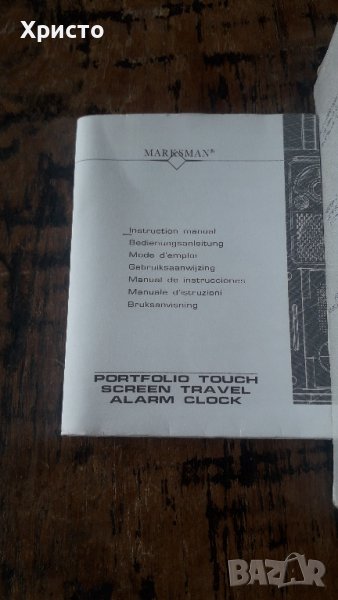 радио транзистор с антена и будилник Marksman в кожен калъф сензорен екран FM сканиращо, часовник. Коженият калъф има джоб за бележки и визитни картички. Чисто ново, не му е махнато защитното фолио на дисплея. Включва ръководство за употреба, сертификат и прастмасова химикалка за докосване на LCD дисплея. Работи с батерии 1 бр AG13 и 2 броя AAA, които не са включени в цената. Размер на радиото в кожен калъф в сгънато състояние е: 8.5x12x2 cm. В оригиналната си кутия, внос от Холандия. Произведено от холандския концерн Полифлейм От частна колекция. За ценители.