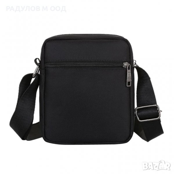 Мъжка чанта от здрав непромокаем плат с дълга дръжка за през рамо, едно основно отделение, два предни и един заден джоб с цип.