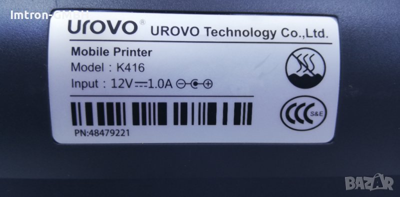 Мобилен преносим термопринтер Urovo K416 - без батерия → Обява 37092323