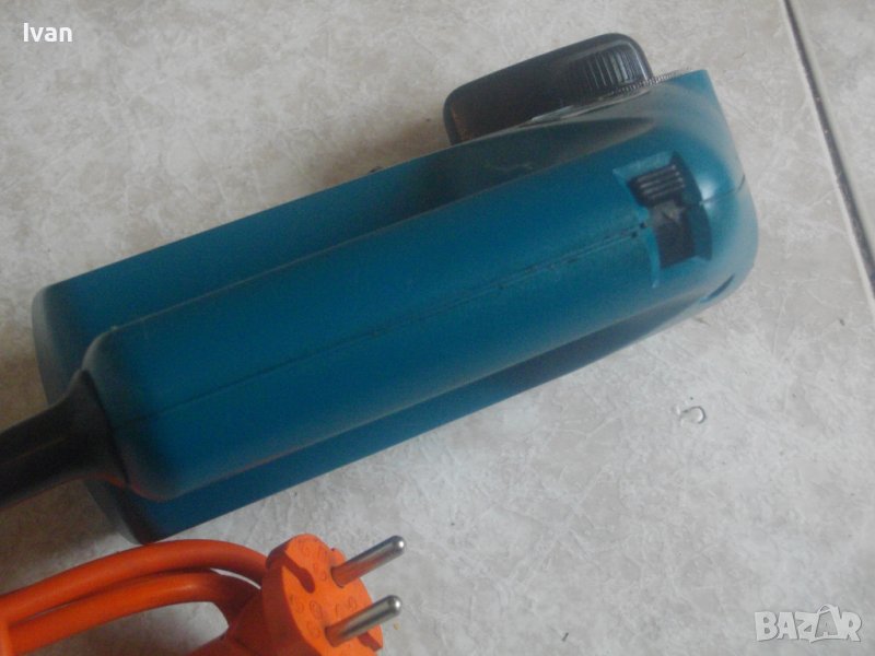 Много запазен външен вид. Техническо състояние .- машината работи, влиза ток, ротора върти, спусъка работи, горният бутон за смяна посока също работи, няма искрене, но не се задвижва предната метална назъбена ролка, която осъществява бавното рязане. Проблема не е лектрически, а механичен. Предполагам нещо по редуктора.