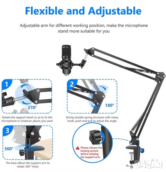 l Стандартният винтов адаптер, можете да го монтирате на всички стандартни стойки за микрофон