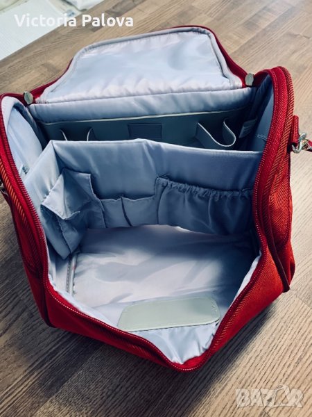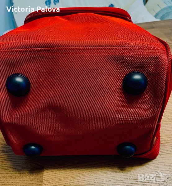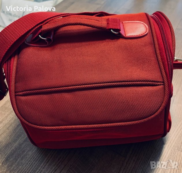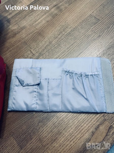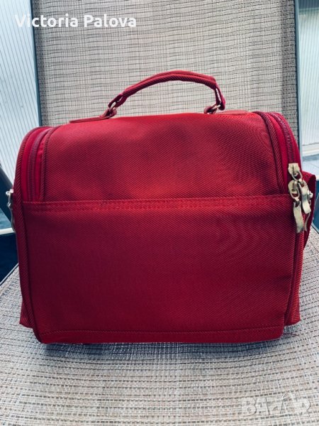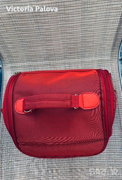 Удобна и вместителна чанта-куфар,побира цялата козметика и четки,с подвижна преграда,закрепяваща се със силни велкро лепенки,огледалце,широк колан за удобство,два външни джоба,ластични държачи за дезодоранти или шампоани.височината е 22см,дъното е 25 см на 29см,чантата се разширява до 36см.