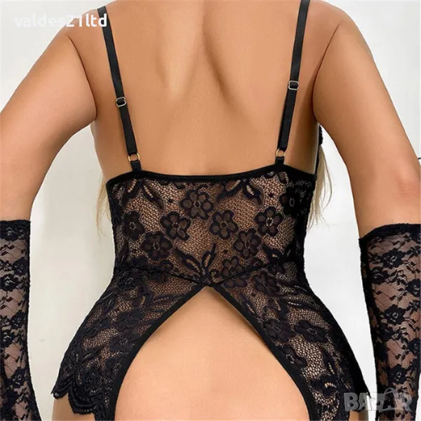 За пълна предизвикателна и неустоима визия еротичното боди с отворено дъно може да комбинирате с жартиерни чорапи и секси ръкавици от другите ни обяви;
