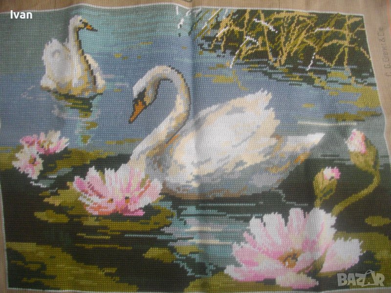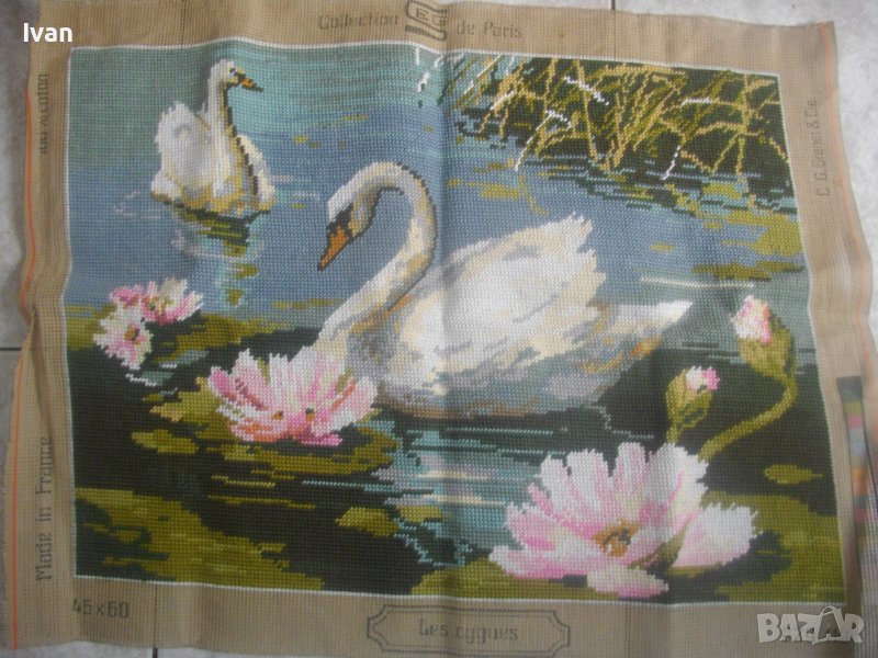 Съвсем нов, непоставян и неупотребяван голям гоблен с Лебеди,от каталога на Колекция Париж.Конци-DMC.