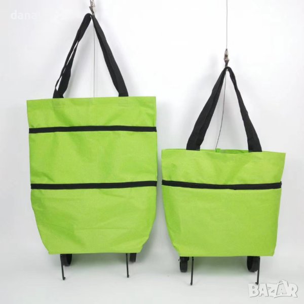 Мултифункционална сгъваема пазарска чанта на колела с механизъм. Удобна и функционална чанта за шопинг с колелца. С възможност за разгъване с помощта на цип, което увеличава обема й двойно, за да побере повече продукти. Чантата може да се носи през рамо, а когато е станала много тежка, просто изпънете колелцата и дърпайте чантата като куфар. Колелцата са на механизъм и имат възможност за прибиране, когато не са необходими! Много удобна. Събира се в дамска чанта преди пазаруване.