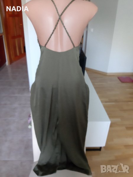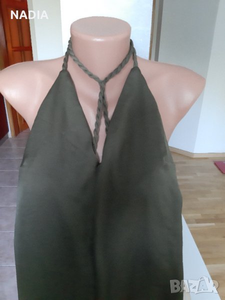 Гащеризонът е от сатен , цвят милитари, до средата на прасеца, свободно пада.