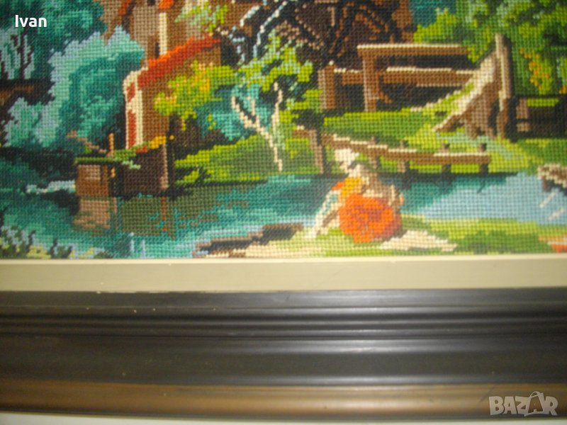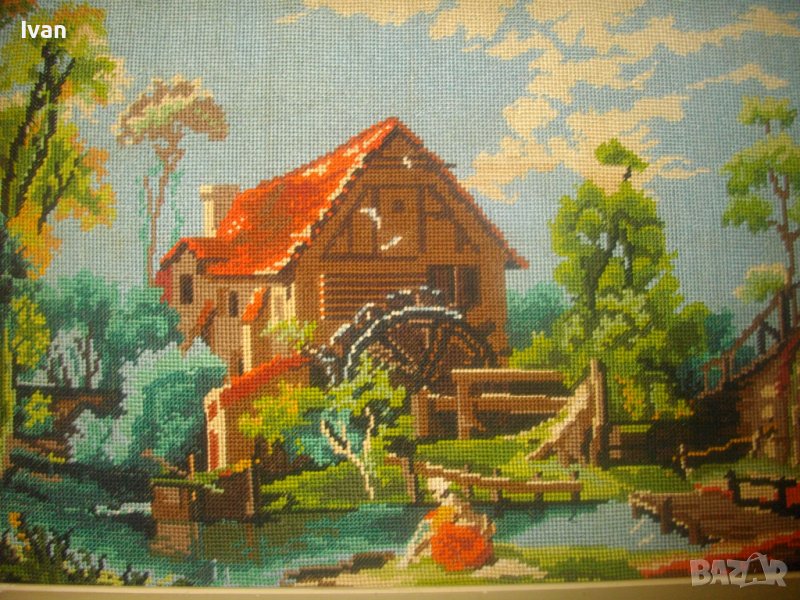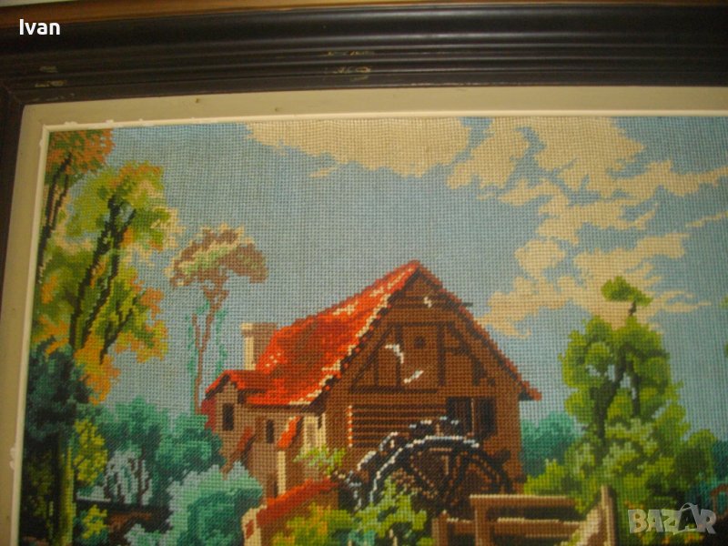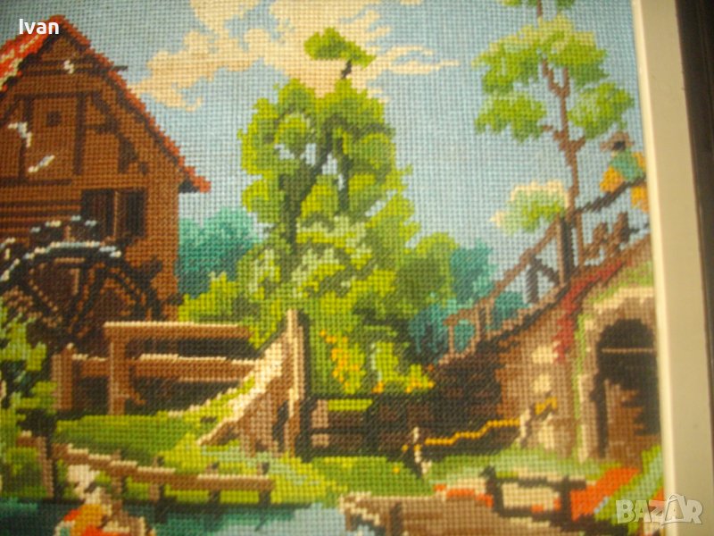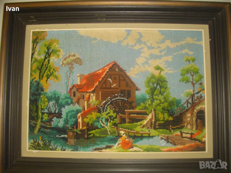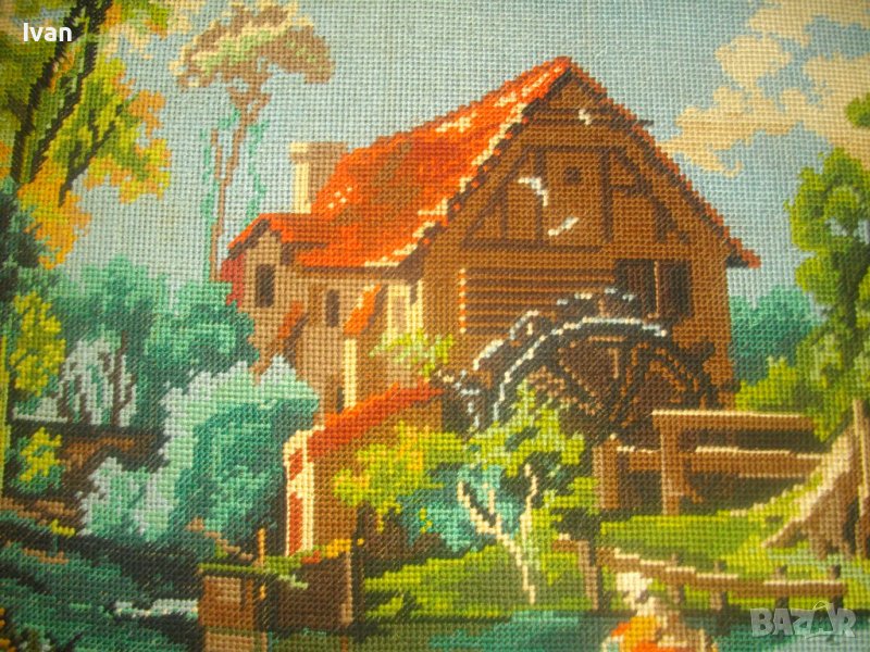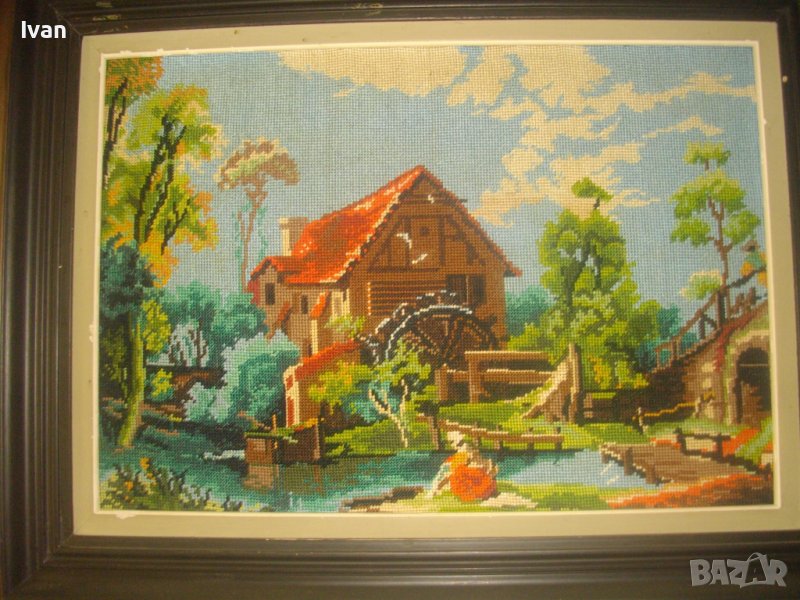 Воденицата-Класика-Голям Гоблен-685х535мм-Гръцки-Ръчен-DMC-Рамкиран-ОТЛИЧЕН