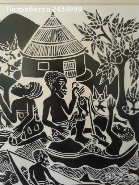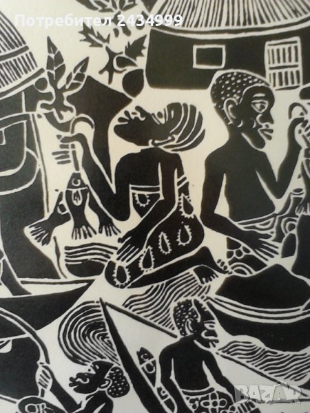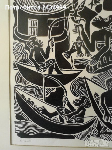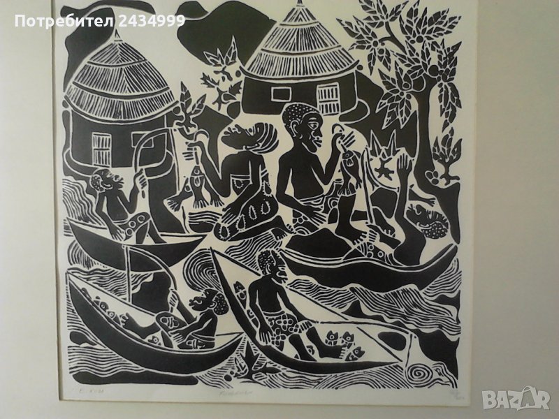 Продавам графика от 70-те от танзанийския художник Едуард Кииза. 54.5см Х 61см. РИБАРИ.
