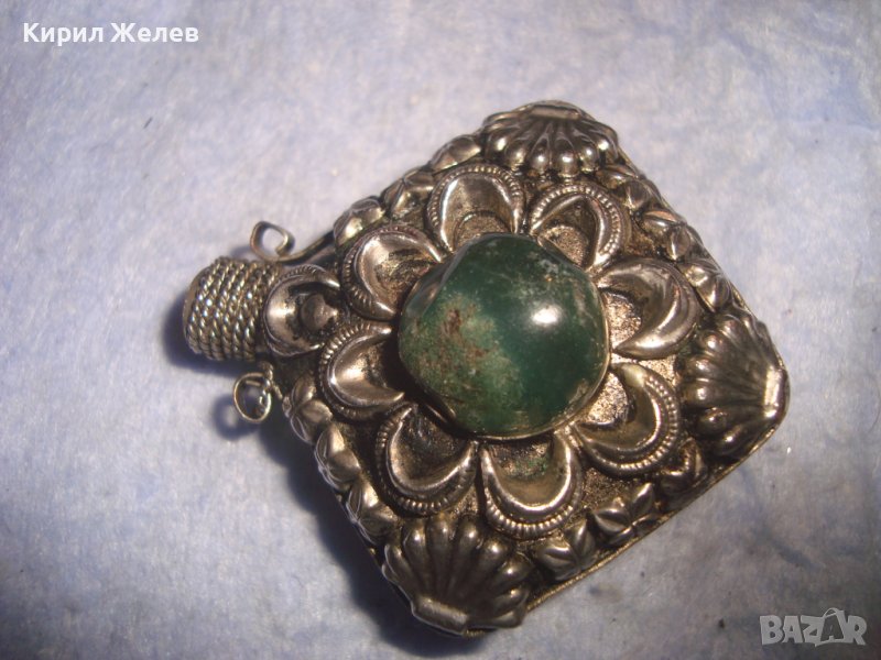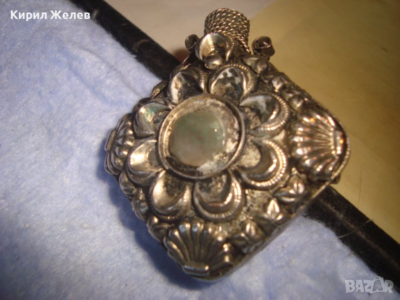 СТАРО САЧАНЕНА СПЛАВ СКЪПОЦЕННО ОРИЕНТАЛСКО ШИШЕНЦЕ за БЛАГОУХАНИЯ с НЕФРИТЕН ОБКОВ 26203