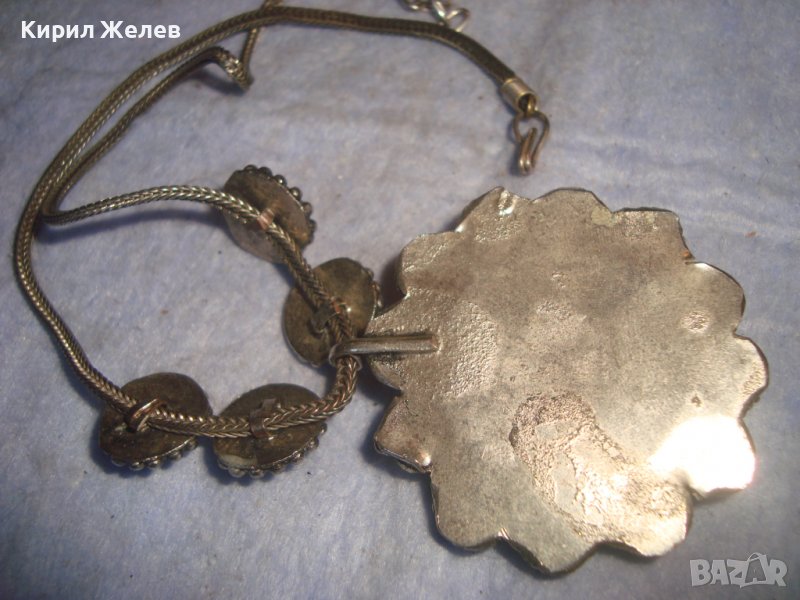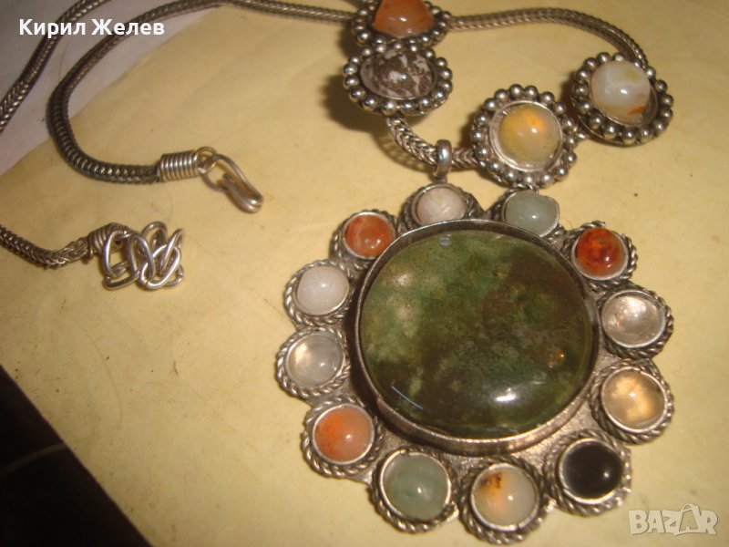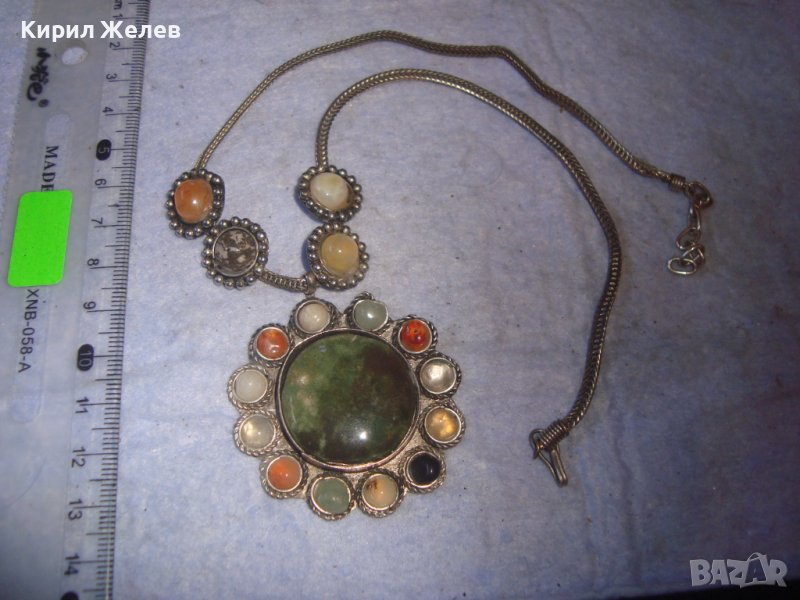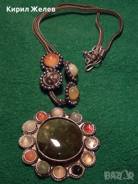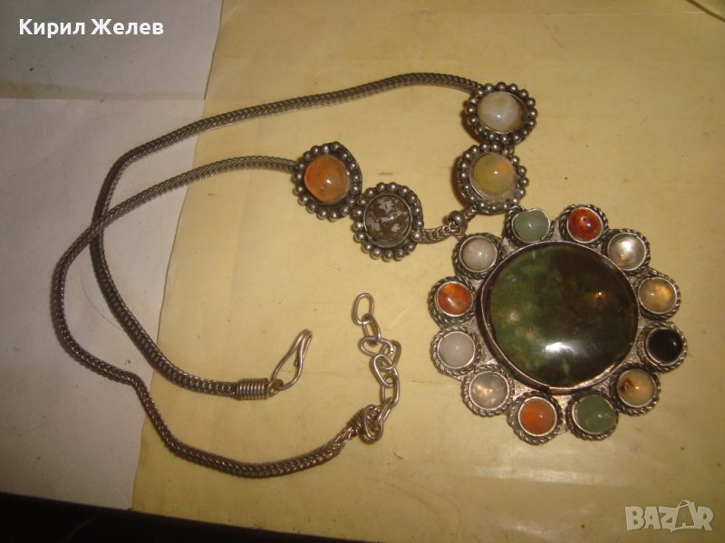 СТАРА САЧАНЕНА СПЛАВ СКЪПОЦЕННА ЕТНОГРАФСКА ОГЪРЛИЦА с НЕФРИТ иАХАТ МАЙСТОРСКА РЪЧНА ИЗРАБОТКА 27929