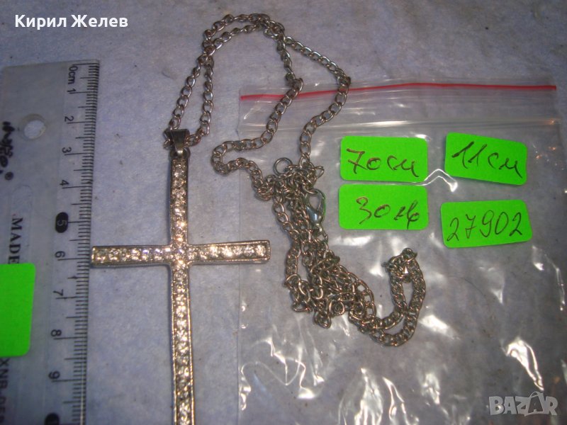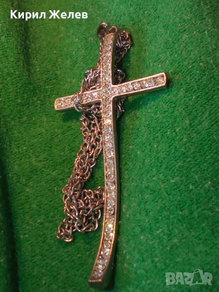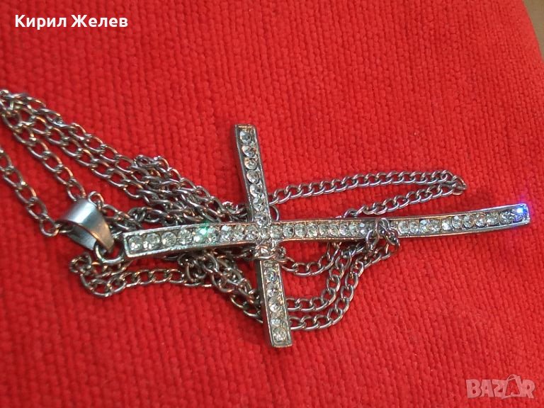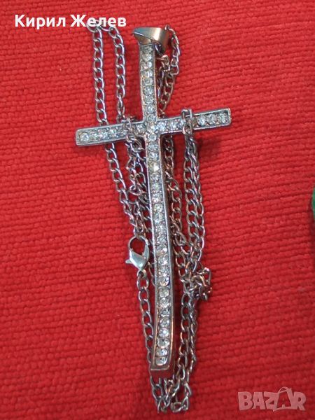 КРАСИВ ФЕШЪН АРТ СРЕБРИСТ МЕДАЛЬОН - КРЪСТ с КРИСТАЛИ и ВЕРИЖКА 27902
