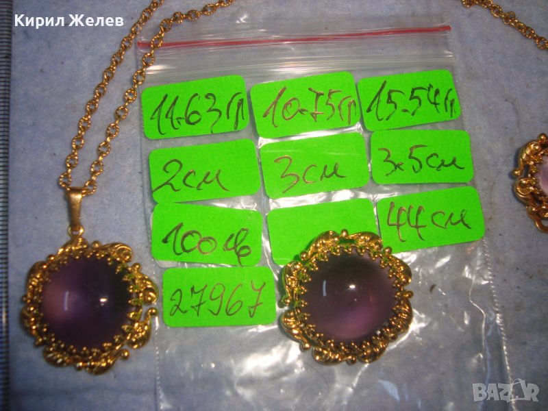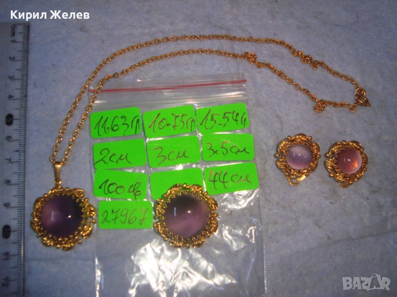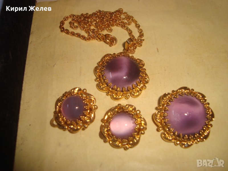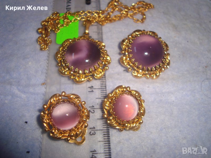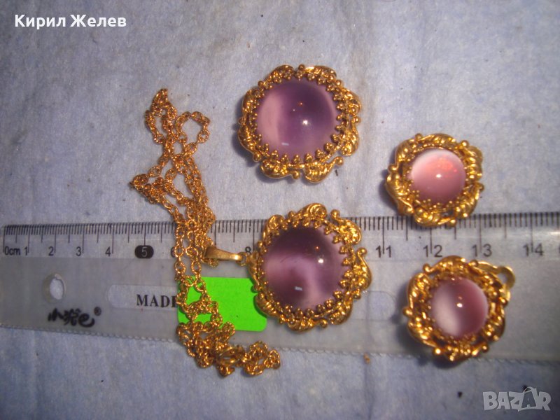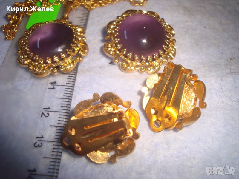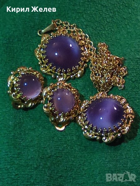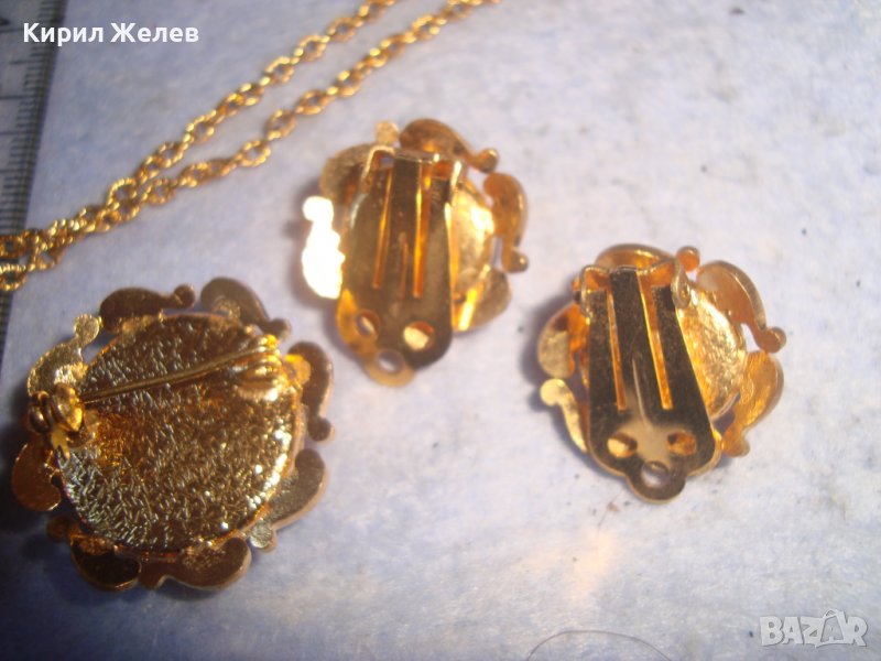 ПОЗЛАТЕНИ КОЛИЕ ОБЕЦИ БРОШКА БРОНЗ с ЮВЕЛИРНО ШЛИФОВАНО КОТЕШКО ОКО АРТ ДЕКО ПРЕКРАСНИ БИЖУТА 27967