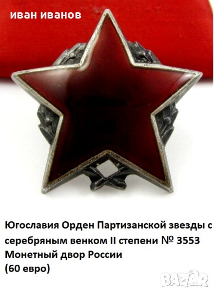 Орден-Партизанска звезда-Трета степен-Сребро-Югославия → Обява 37117008