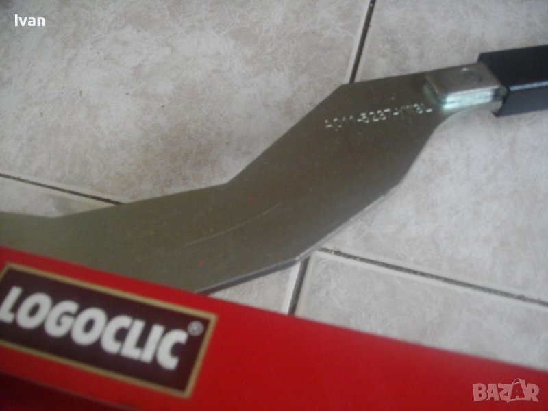 Цялостна дължина на машината - 800 мм, ширина на основите - 240 мм. Масивна основа от дебела стомана. Машина стой здраво и стабилно. Ножа е дебела стомана с дебелина - 5 мм. Стоперен болт за притискане на ламината ,които се реже, да не се мести извън очертанията.Удобно нехлъзгащо се инпрегнирано, гумирано покрите на дръжката при захвата на ръката.