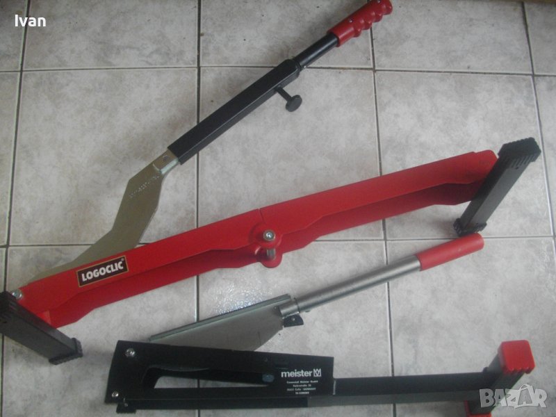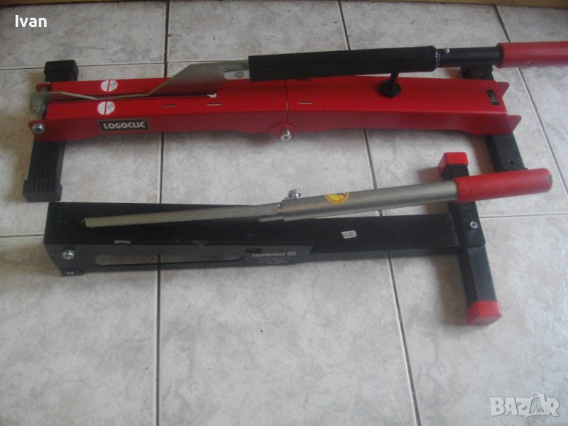 Съвсем нови, неизползани и неупотребявани професионални немски оригинални, с вписано немско оригинално производство ръчни гилотини - резачки за ламиниран паркет/ламинат.
