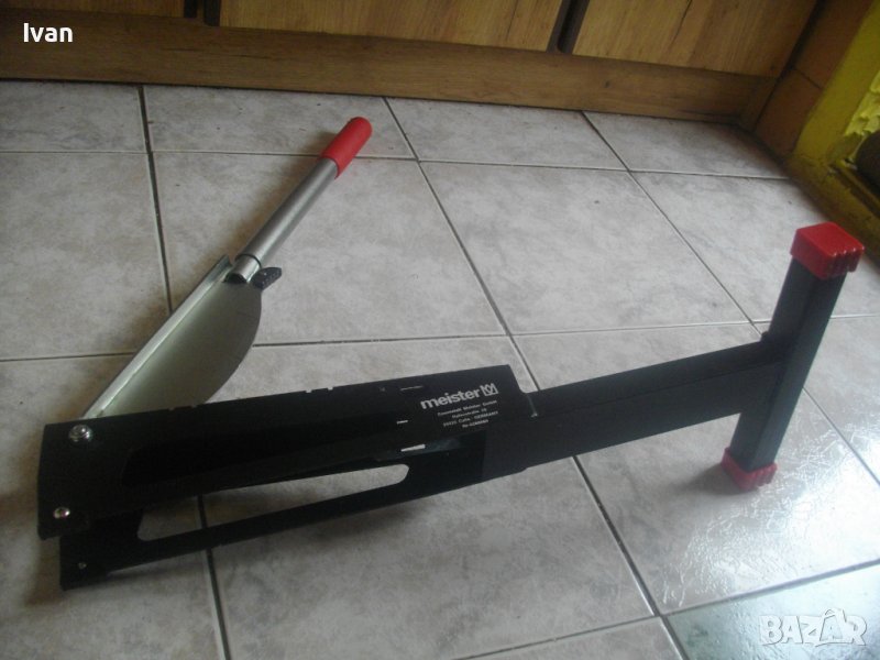 Малка, удобна ръчна гилотина с ергономични размери и олекотен дизайн за рязане на ламиниран паркет/ламинат, професионален модел на немският концерн Мейстер.
