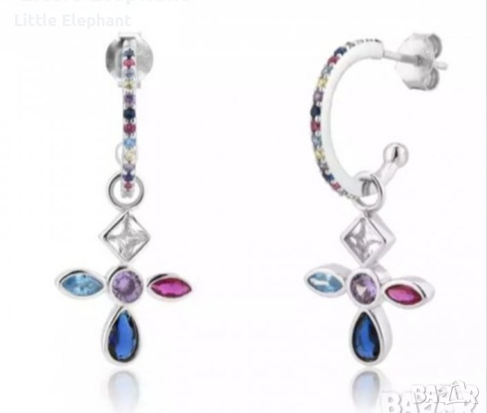Сребърни висящи обеци кръстове,coloured/нови → Обява 37123102