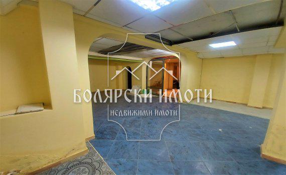 Болярски Имоти Ви предлага за продажба Голямо Складово/Търговско помещение, намиращо се в близост до Идеаления Център. на Велико Търново. Имотът е разположен в сграда Ново строителстов, на партерно ниво с рампа и достъп за товарно-разтоварителна дейности. Площ- 220кв.м със следното разпределение: голяма зала, две по-малки помещения, офис с обзаведена баня с тоалетна ,2 санитарни помещения (на шпакловка и замазка). Предлага се в следната степен на завършеност: окачен таван с възможност за изграждане на вентилационна система, стени с латекс, подовата настилка е теракот, монофазен и трифазен ток. Имотът е многофункционален и е подходящ за склад, офис за куриерски услуги, шивашки цех, работилница, ремонтни дейности, танцова зала и множество други. Цена е с включен ДДС. ID 43647