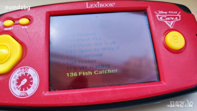 Детска конзола на Маккуин светкавицата с над 100 игри с цветен дисплей уникална игра за забавления работи с 3 батерии и страшно много държат по време на игра мелодии звук уникално за работа проблемът на тази игра е че има черта в края на дисплея вижда се снимал съм го но абсолютно не пречи на работата му цената която му търся е напълно крайна