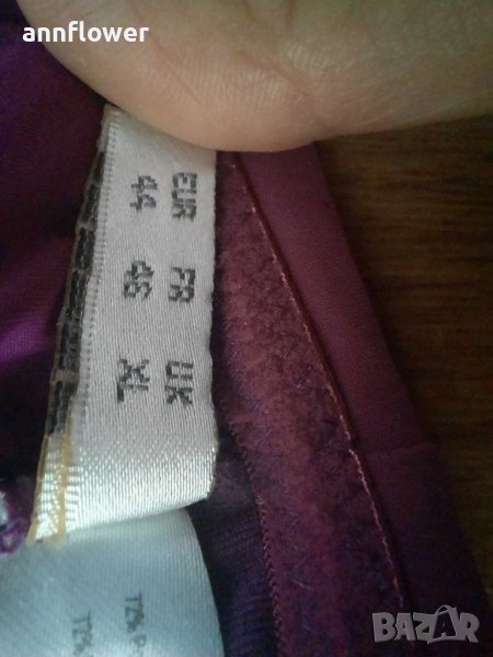 Долнището е ново но няма етикет защото е изпрано. Цвят пурпур. Размер 46,XL ширина на ластика едностранно измерен без да разтягам 43см дълбочина подгънато 30см разгъната 40см