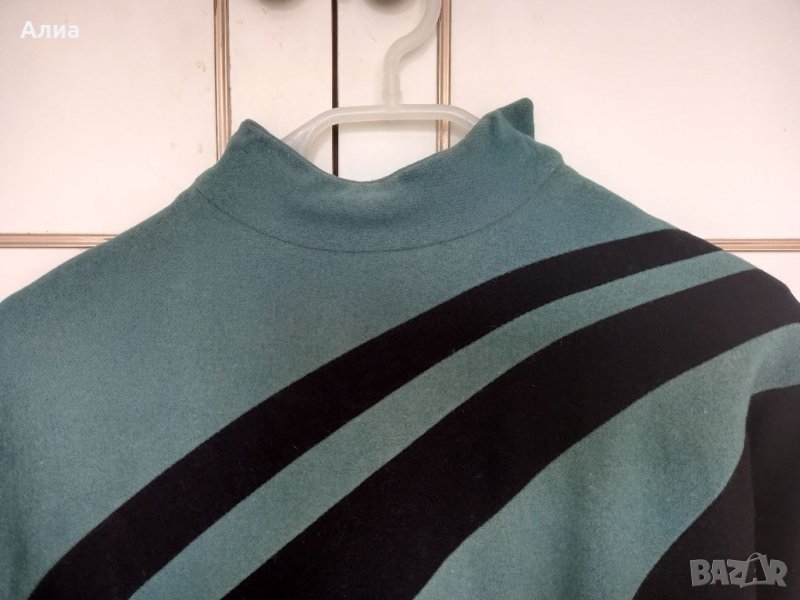 Зимна рокля в черно и морско синьо/зелено. Размер L. Роклята е в прекрасна цветова комбинация. Материята е с голям процент финна вълна. Права красива рокля. С дискретна странична цепка. На мен ми е тясна