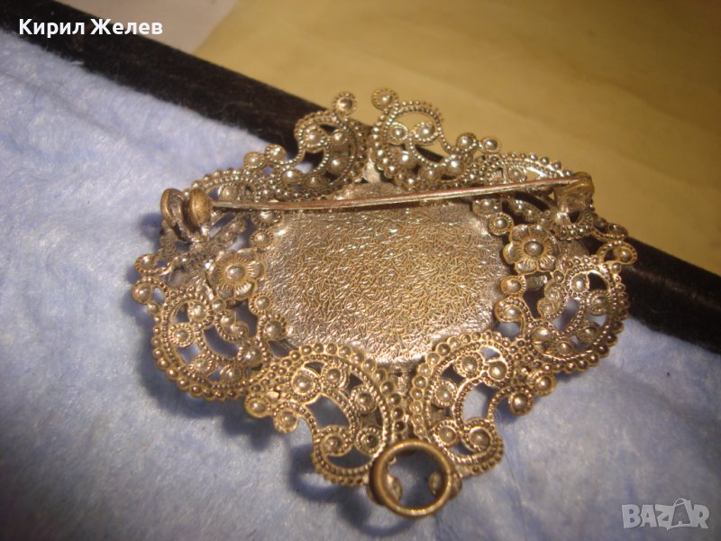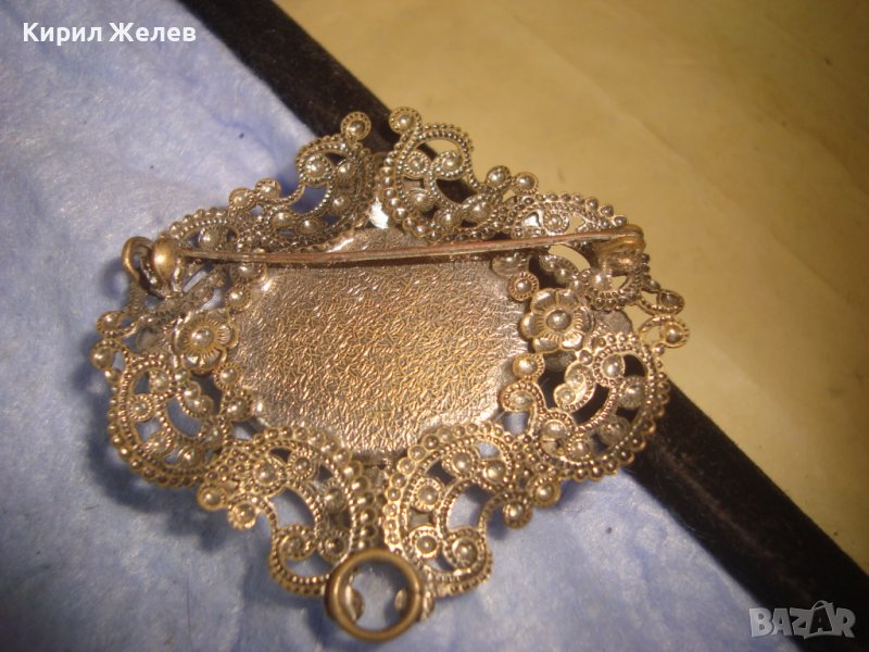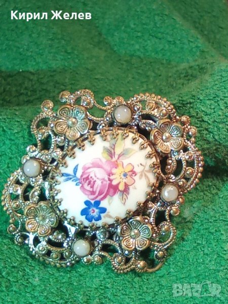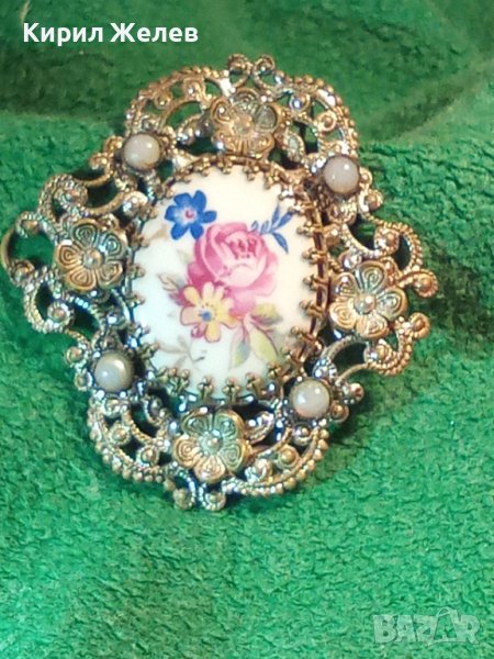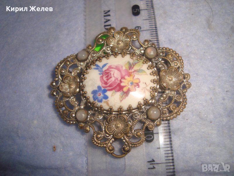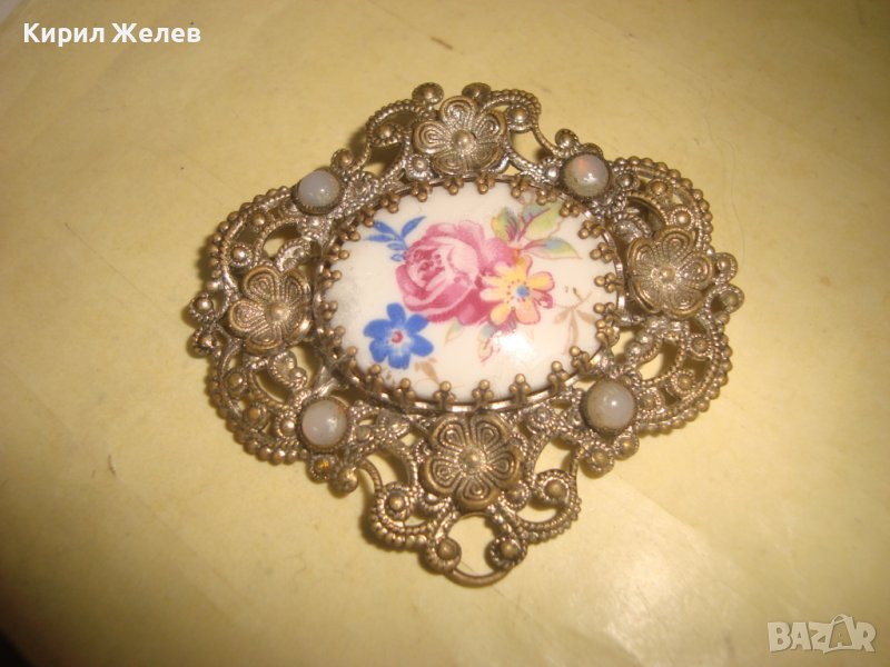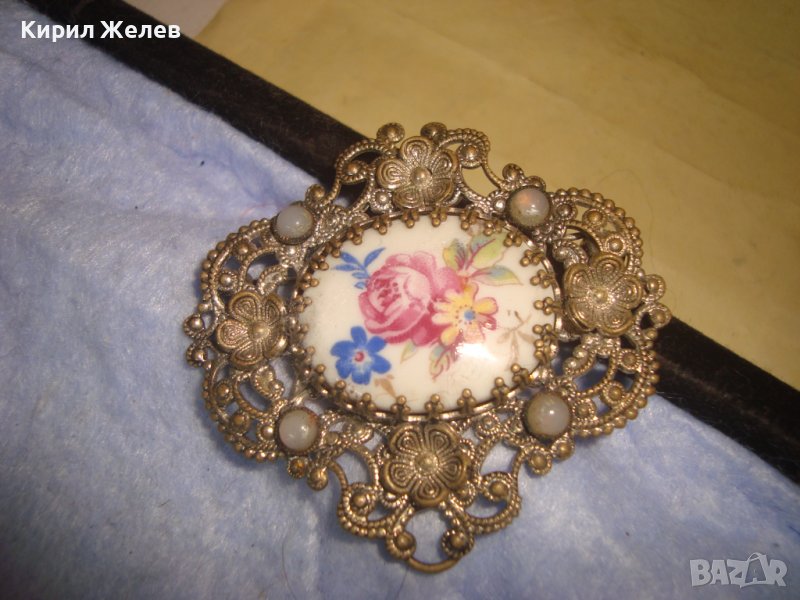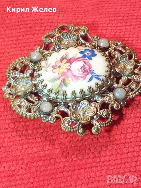 СТАРА ФИЛИГРАННА БРОНЗОВА СКЪПОЦЕННА ПРЕКРАСНА АР НУВО БРОШКА РИСУВАН ПОРЦЕЛАН 27913