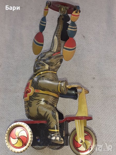 Продавам прекрасна малка ламаринена играчка "Цирков слон на триколка".