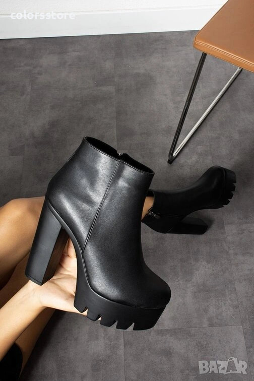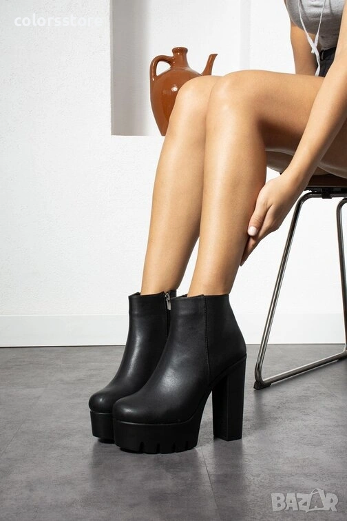 Боти на ток - черна кожа - NA100