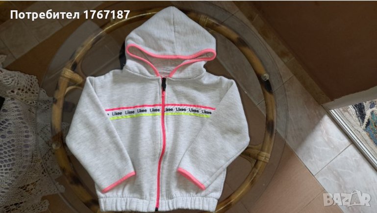 Детски плътен суитчер подходящ е за по-хладно време, есен и пролет. Подходящ е и за момичета, и за момчета, унисекс. Много мек от памук, с цип и джобаве. Изключително запазен, носен много малко. Без забележки