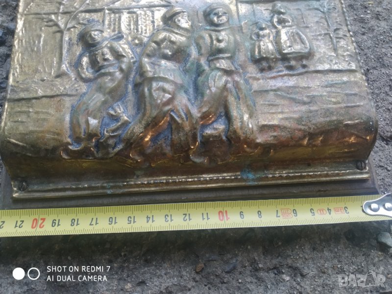 викториянска поставка за писма.дървена основа с меден /месингов/ обков