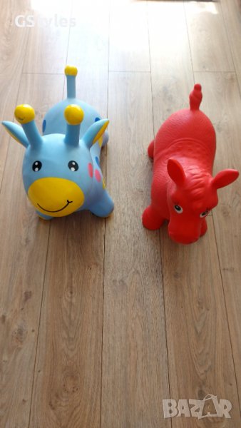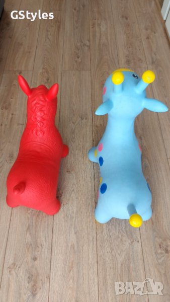 Магаре за подскачане и жираф за подскачане, яздене. Играчките са използвани и имат следи от изхабяване. Здрави и годни за още игра. Цената е за брой.