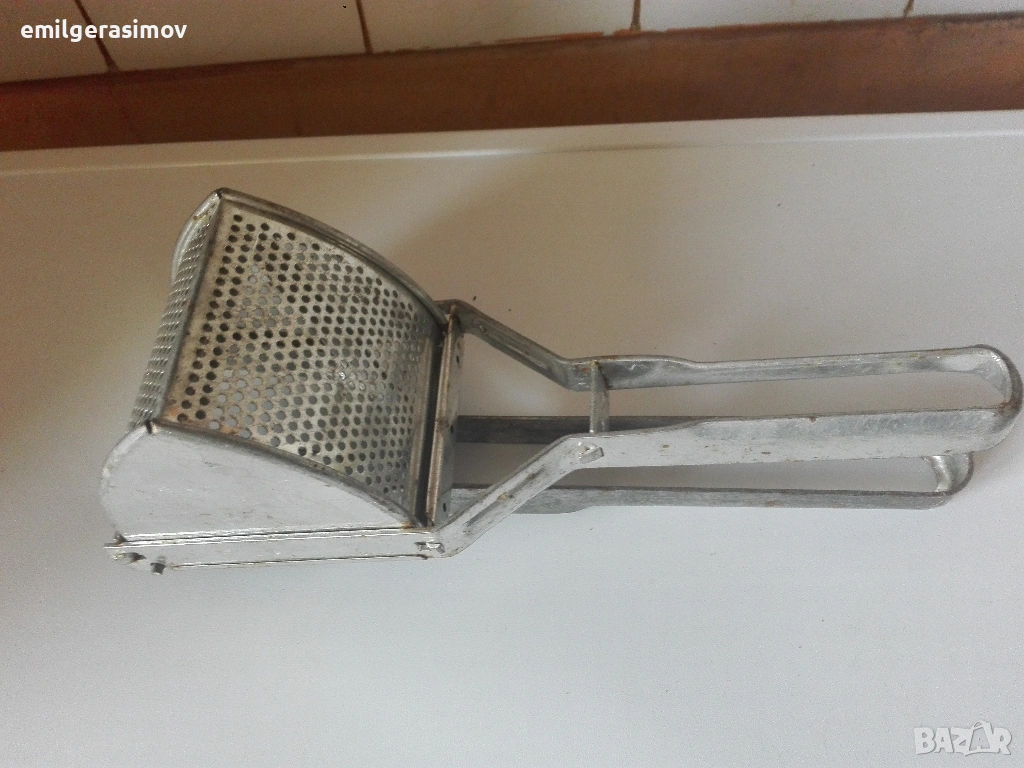2. Голяма ръчна преса за картофи от 80-те години. Нова , неупотребявана. Дължина 28 см.Цена 8 евро.
