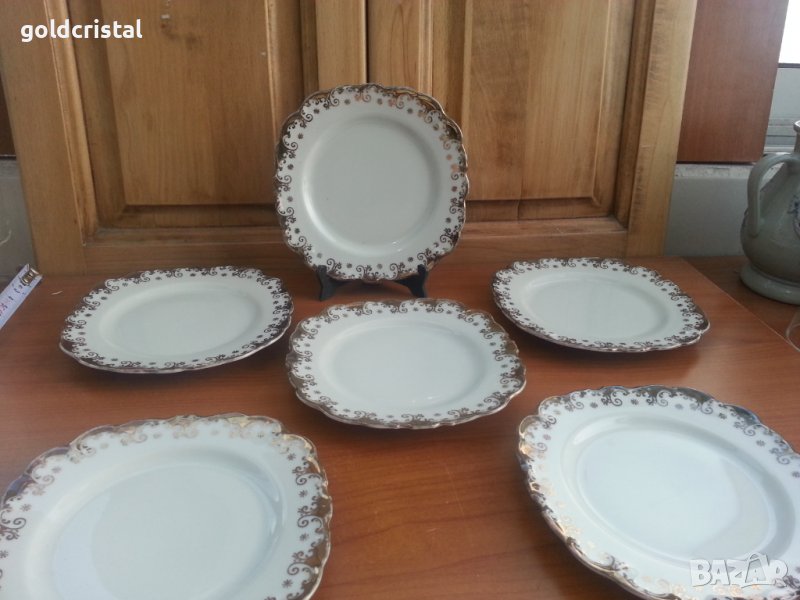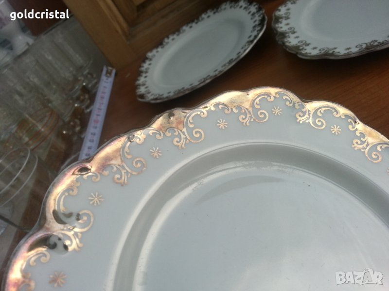 немски порцелан Бавария чинии чинийки с много позлата маркирани 6бр-89лв много добро състояние без чукнато и пукнато с златен кант има нужда от почистване на позлатата има снимки с една почистена позлата сервиз комплект сет лот ретро арт декор винтидж колекция стари антикварни предмети обзавеждане за дома и семейството подходящи за подарък за ценители и колекционери