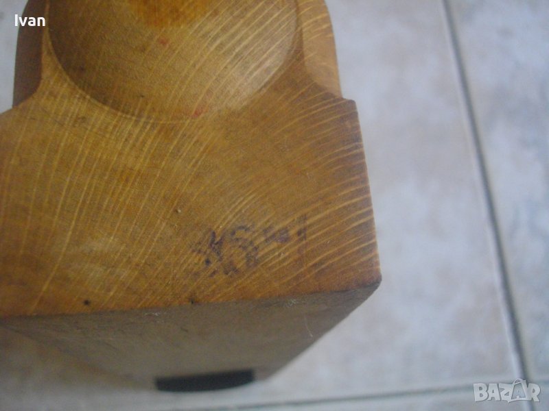 Тялото и рогчето са направени от бук. Подложката е от чам.