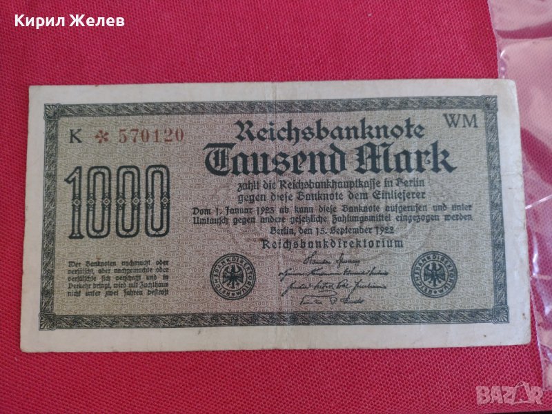 Райх банкнота 1000 марки 1922г. Германия рядка за колекционери 28215 → Обява 37143403