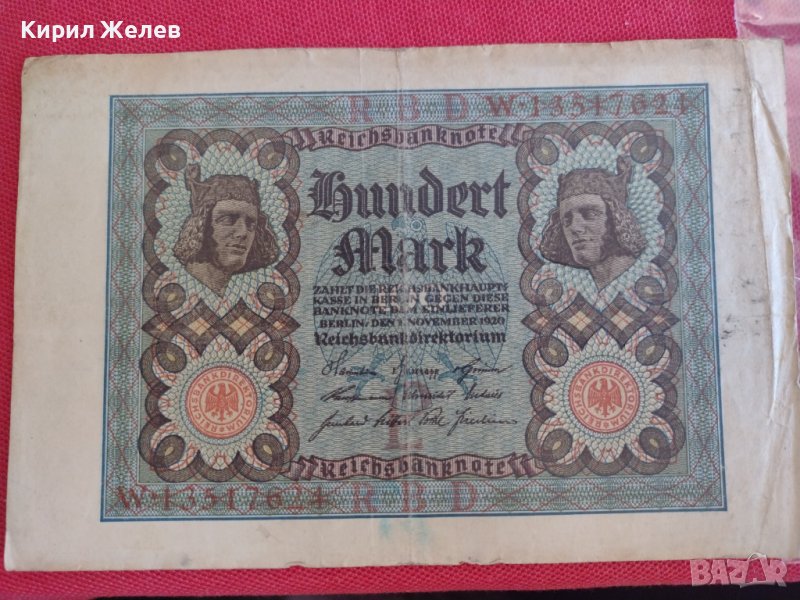 Райх банкнота 100 марки 1920г. Германия уникат за колекционери 28294 → Обява 37144007