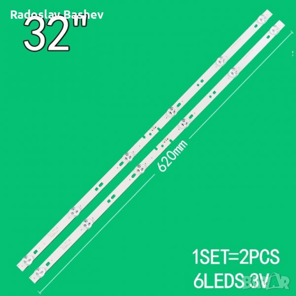 JL.D32061330-032BS-M V02 617MM 6Led 3V 100%НОВА LED лента за подсветка.Цената е за комплект от 2Бр Взаимозаменяем Аналог hk32d06-zc22ag-20,rf-ae320e30-0601s-06 A4, yf-k02l004hmxd-0001,20ah530 n180707, T409 230101011.Panel-Hk315ledm-jh36h, Hk315ledm-0hnbh,Hk315ledm-jh6rh.