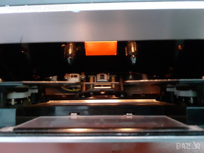 Типичен касетен дек с предно зареждане с отделението за касети, разположено от лявата страна на дека. Изваждането