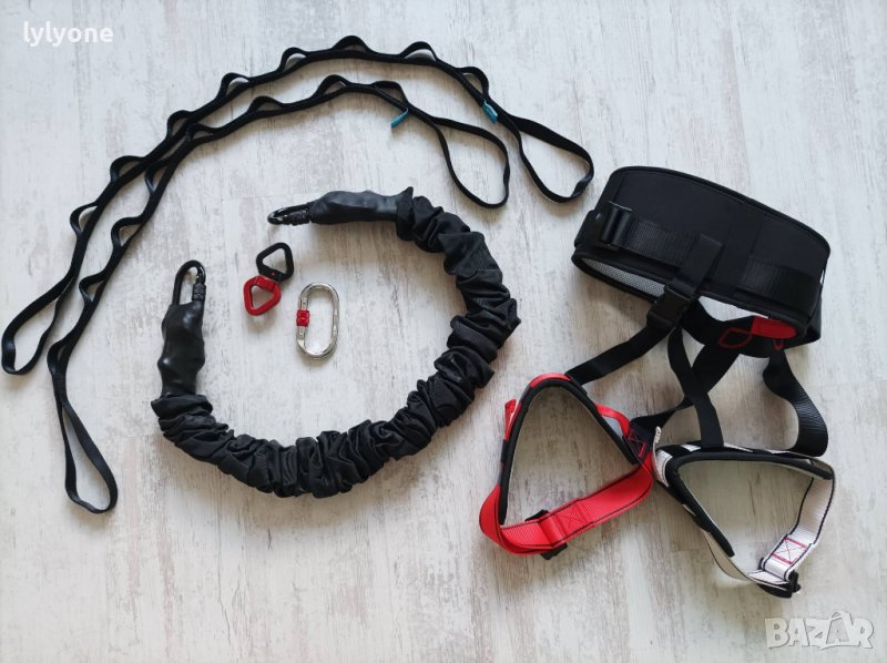 * Карабинерите са инсталирани на бънджи шнура, за да можете след слагането на Бънджи колана - когато сте готови за тренировка, да се закачите за бънджи шнура лесно и бързо.
