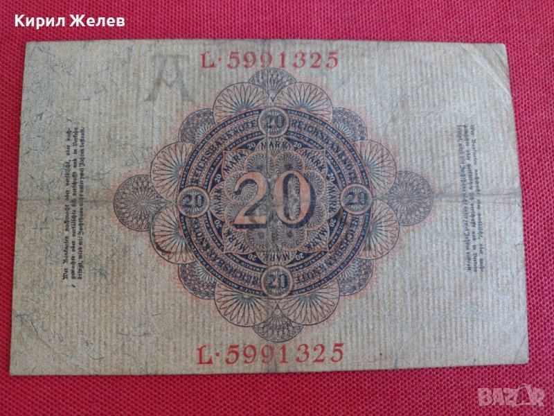 Райх банкнота 20 марки 1914г. Германия перфектна за колекция 28306 → Обява 37152758