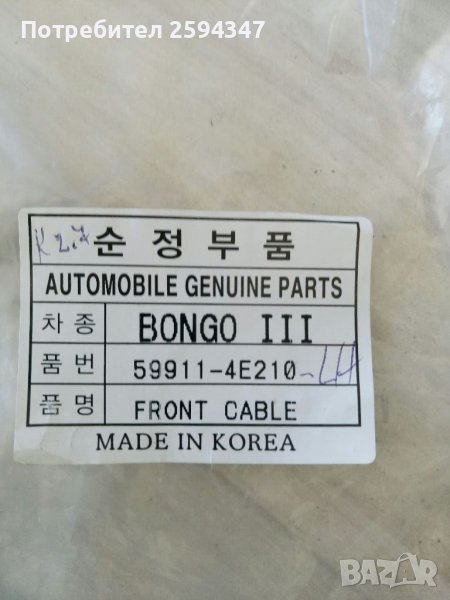 KIA K2500 K2700 ЖИЛО РЪЧНА ПРЕДНО → Обява 37152830
