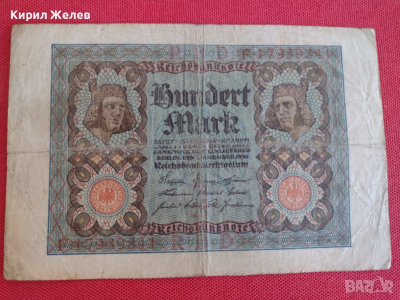 Райх банкнота 100 марки 1920г. Германия перфектна за колекционери 28299 → Обява 37153286